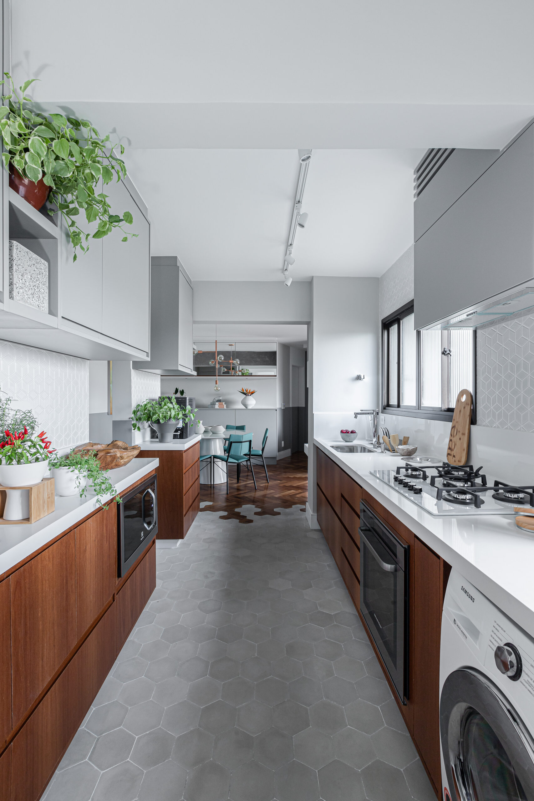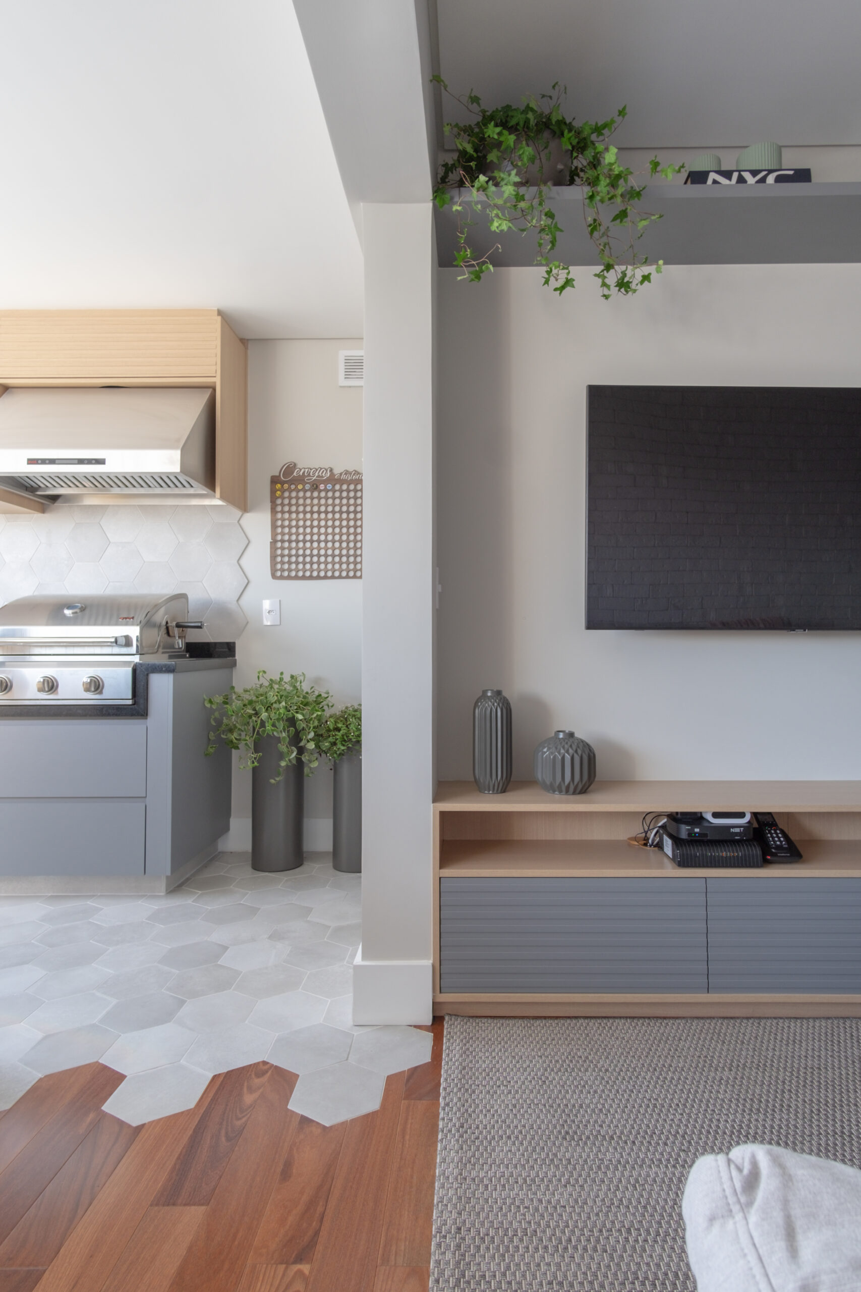 Você já pensou em combinar dois pisos diferentes no mesmo ambiente? Quem me acompanha nas redes sociais sabe que o encontrinho hexagonal já virou praticamente a marca registrada do escritório. É possível criar vários desenhos com o ladrilho hexagonal, só usar a criatividade! Também dá para combinar com diferentes materiais como porcelanato e a madeira. Até no banheiro a gente consegue criar um visual super moderno e divertido usando o ladrilho hexagonal de cores diferentes. Selecionei alguns projetos com o encontro hexagonal para vocês se apaixonarem também.