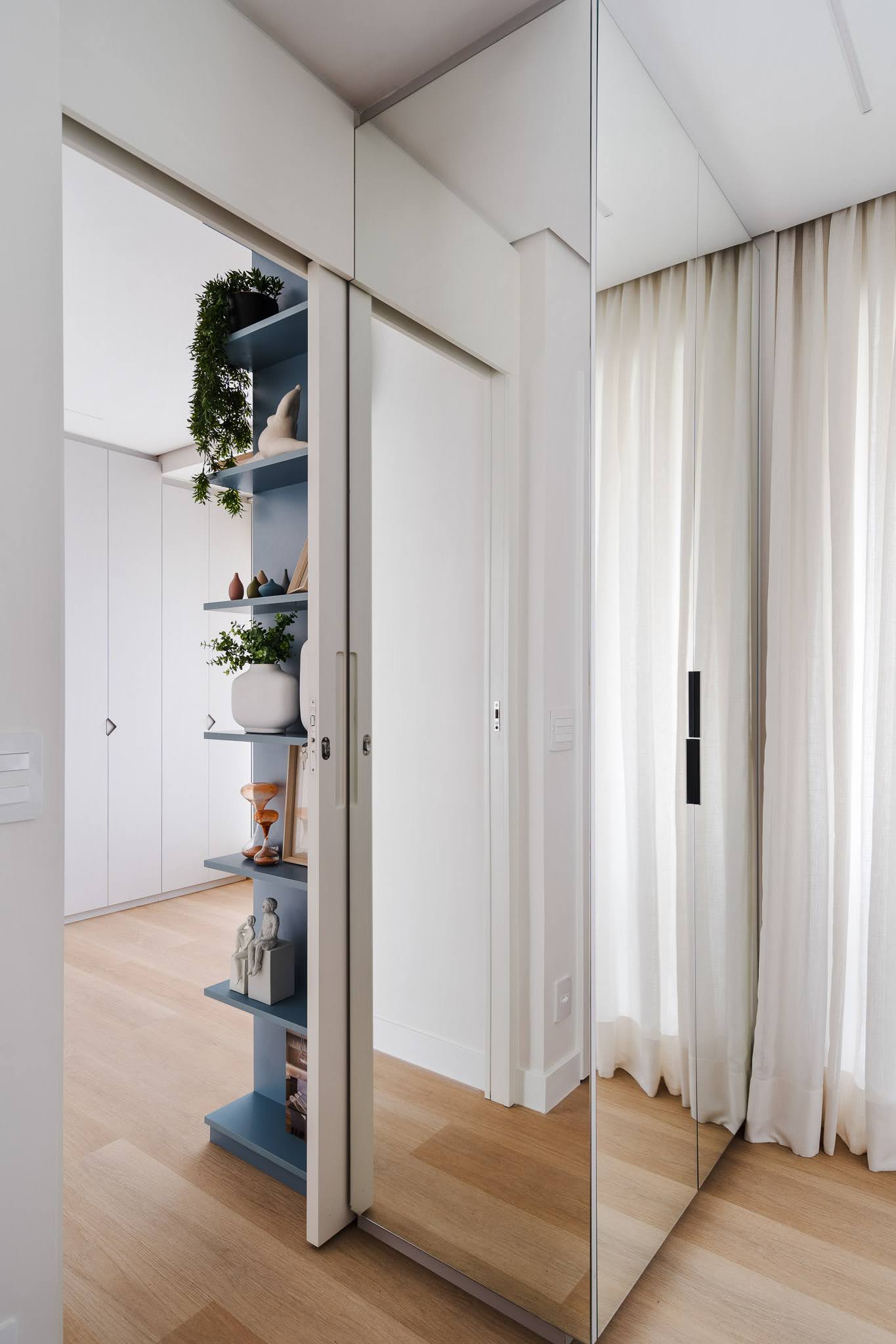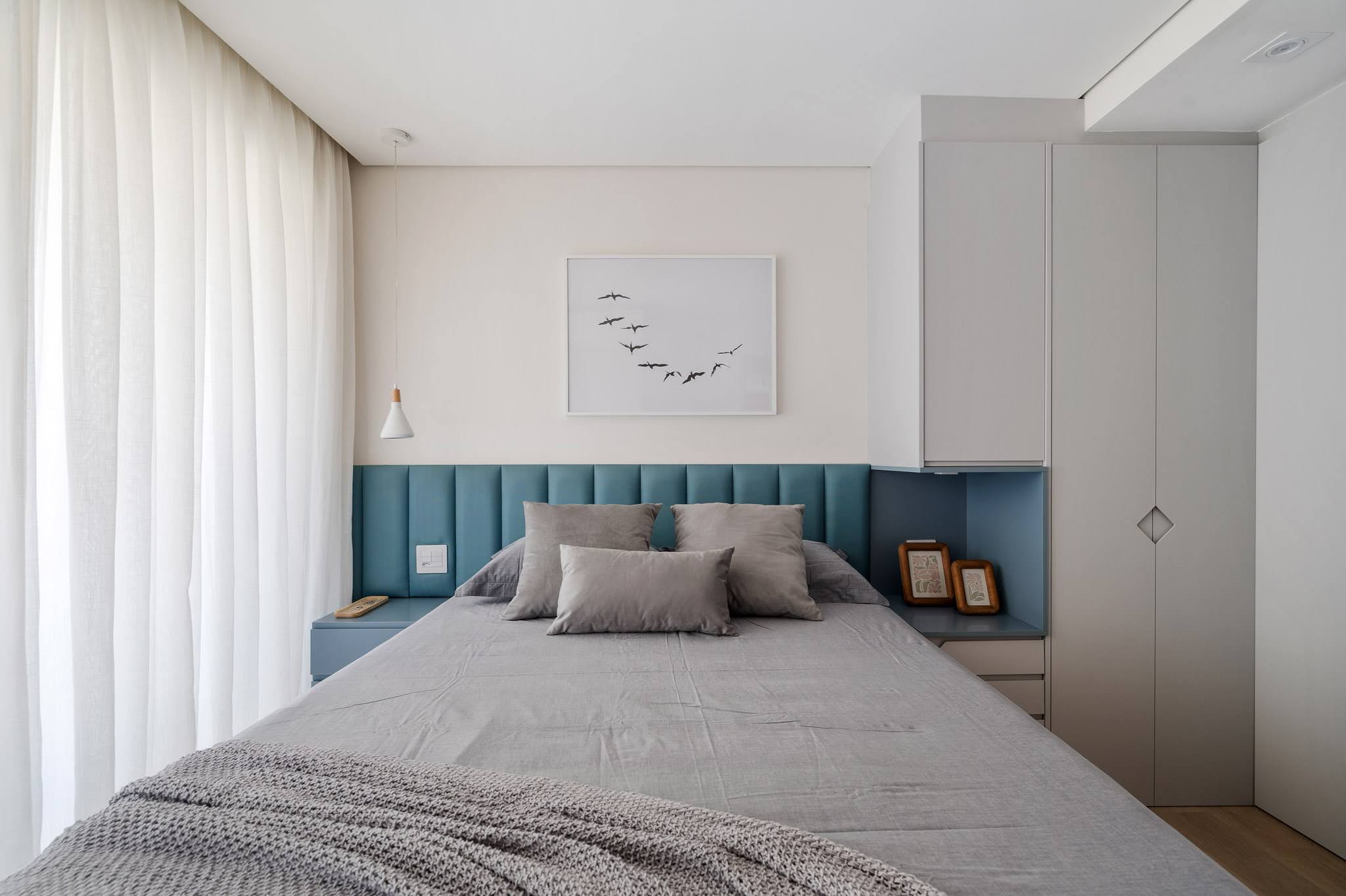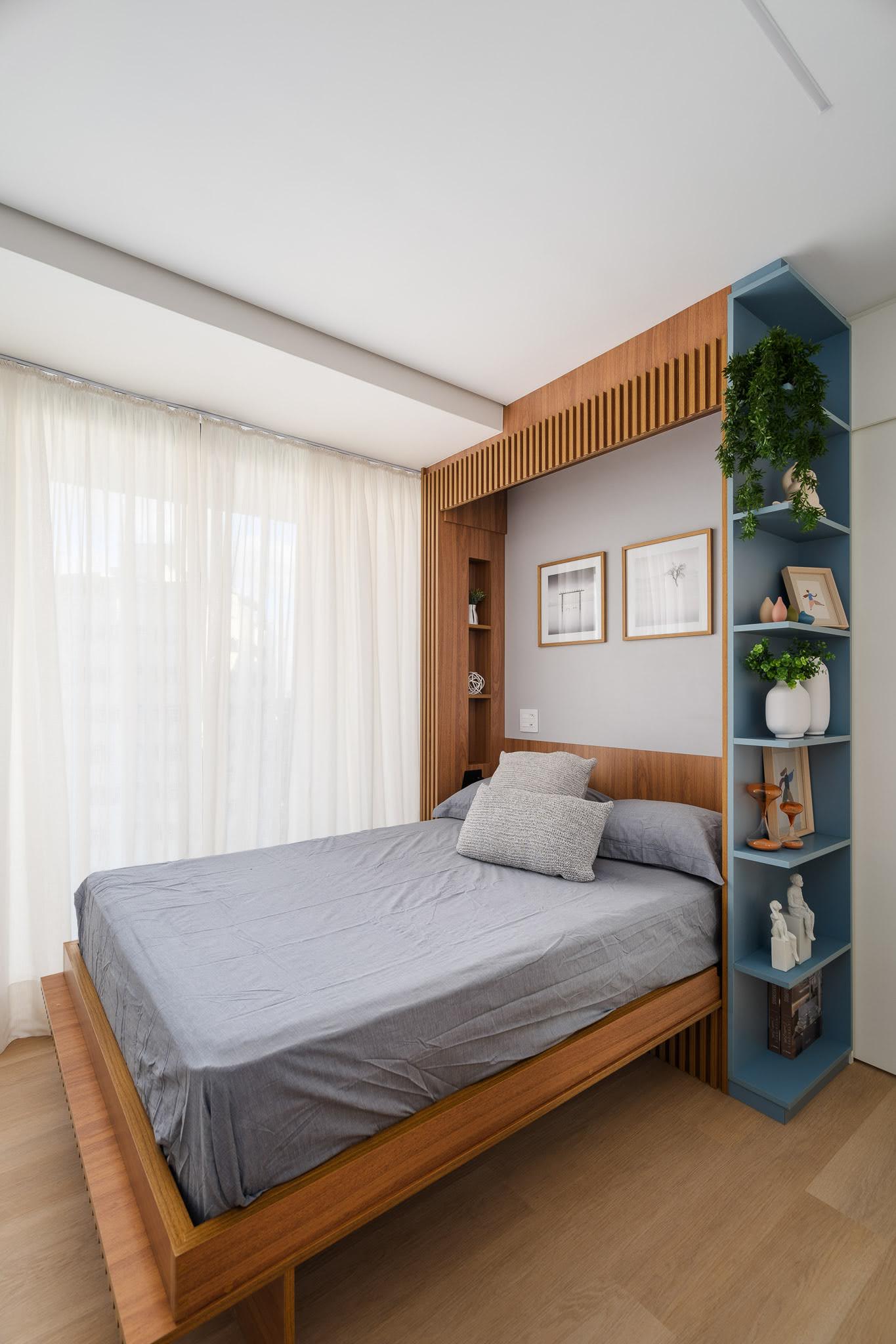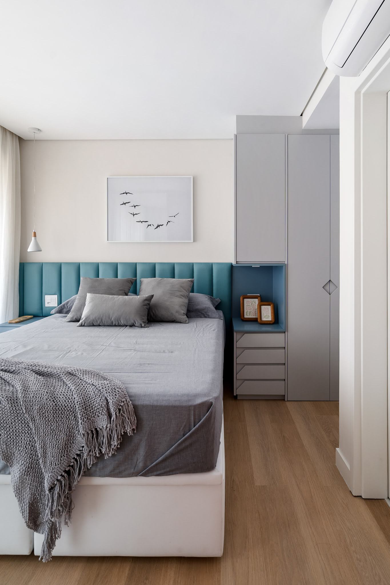 Suíte e Quarto de Hóspedes/Closet: MDF Freijó Puro – Duratex, MDF Aurora – Duratex, MDF Azul Astral – Duratex