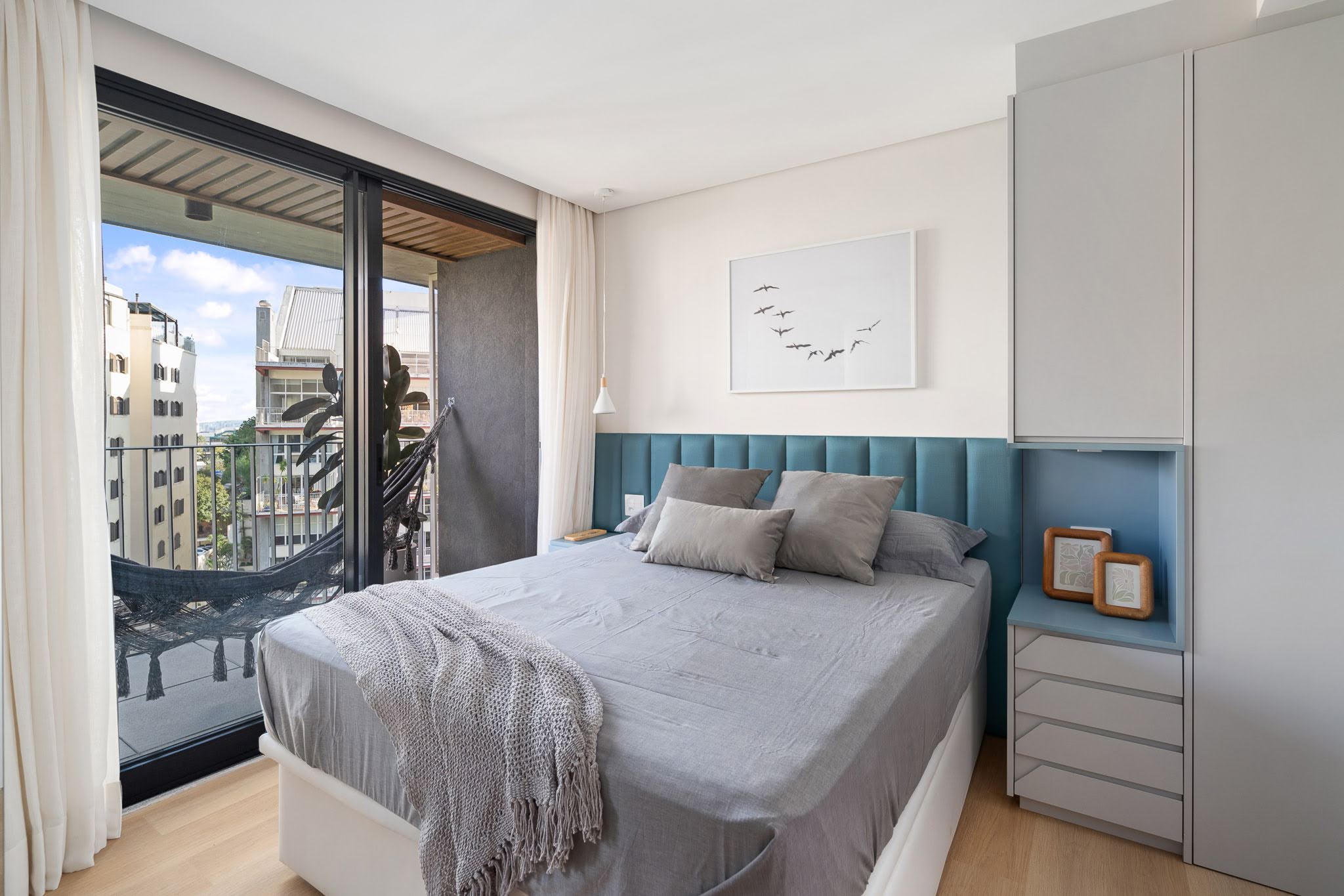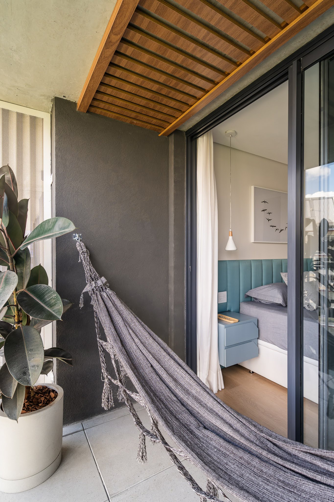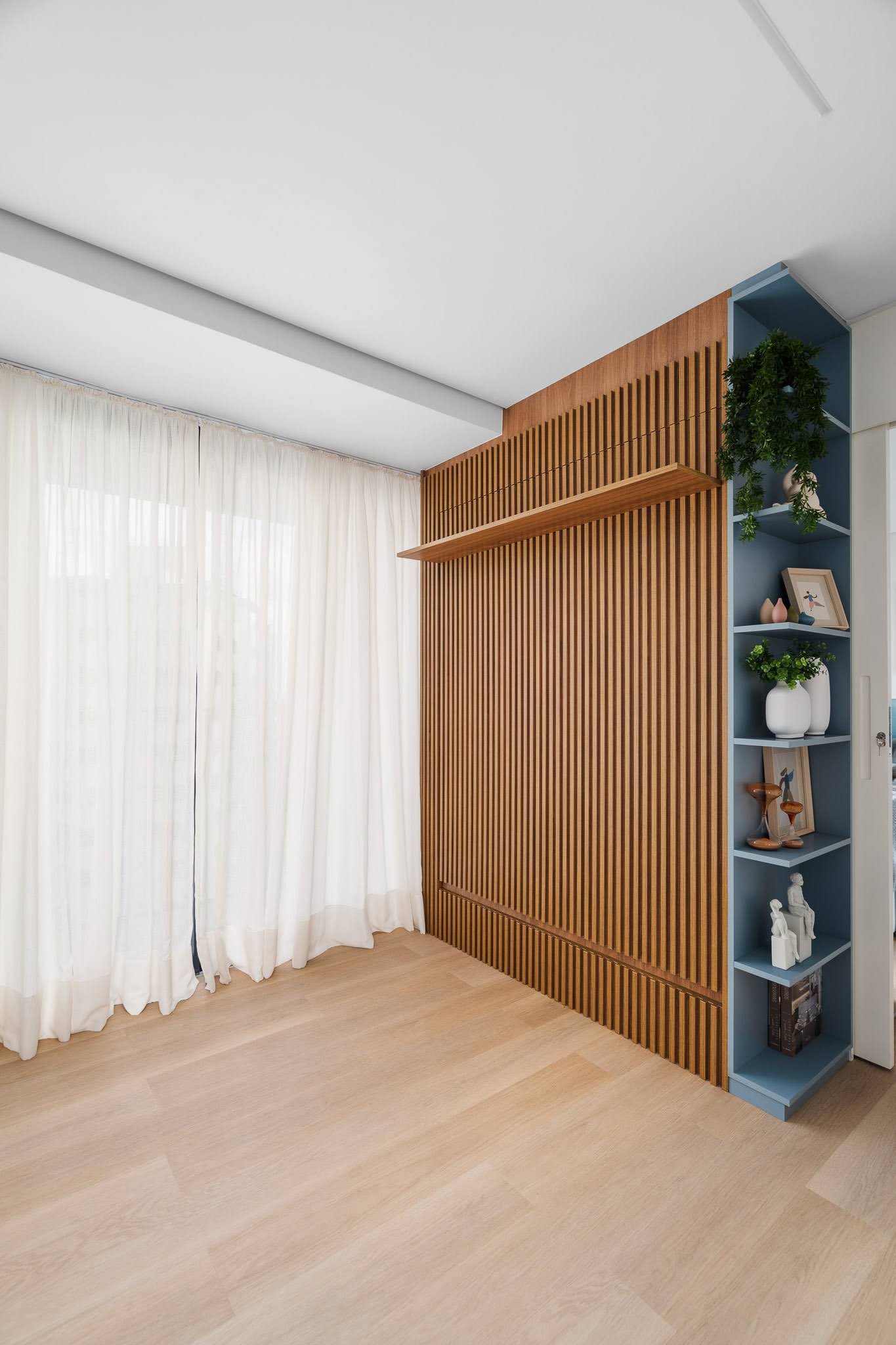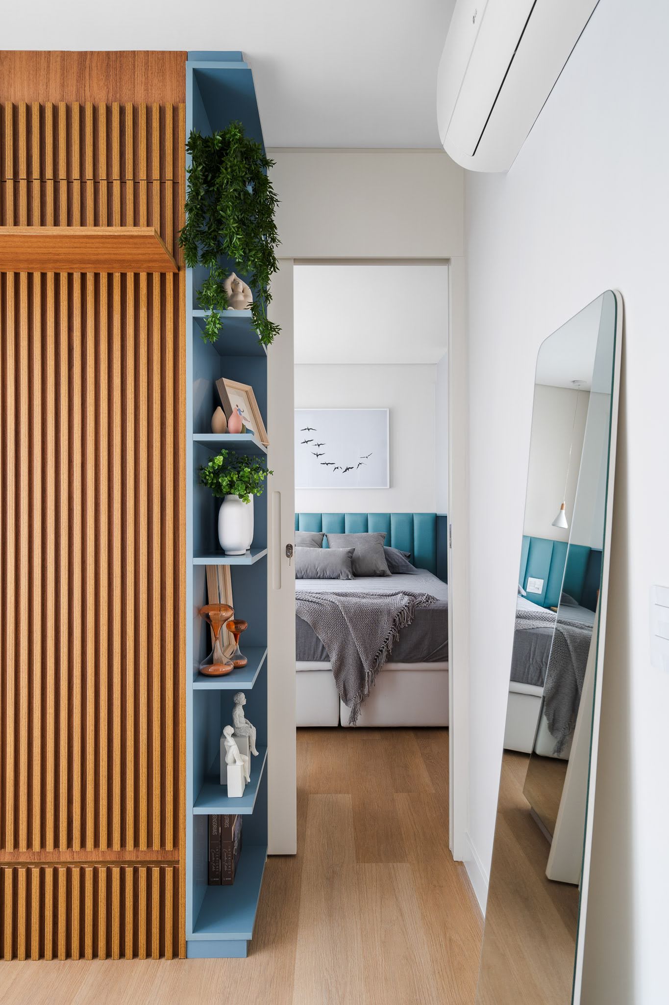 Suíte e Quarto de Hóspedes/Closet: MDF Freijó Puro – Duratex, MDF Aurora – Duratex, MDF Azul Astral – Duratex