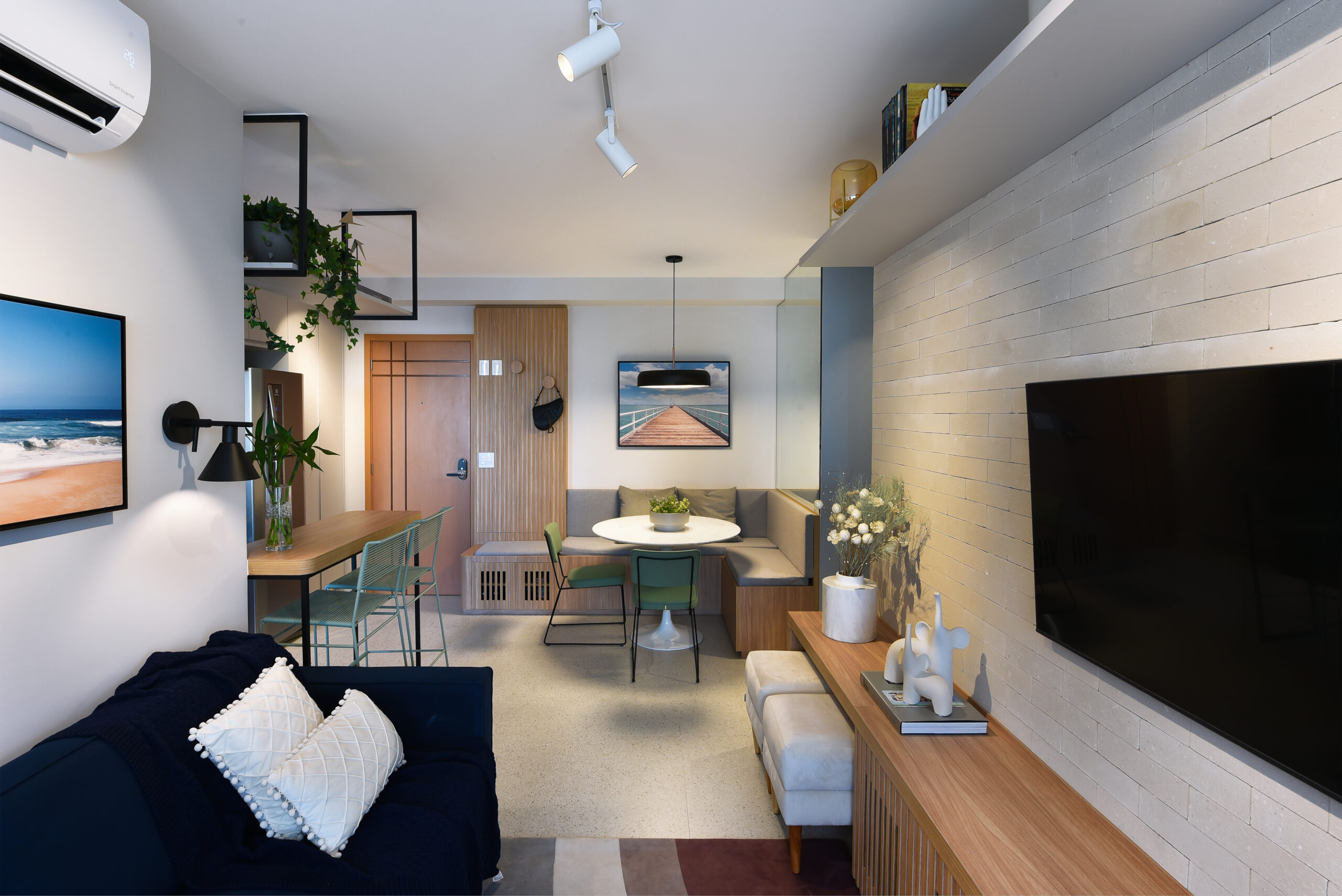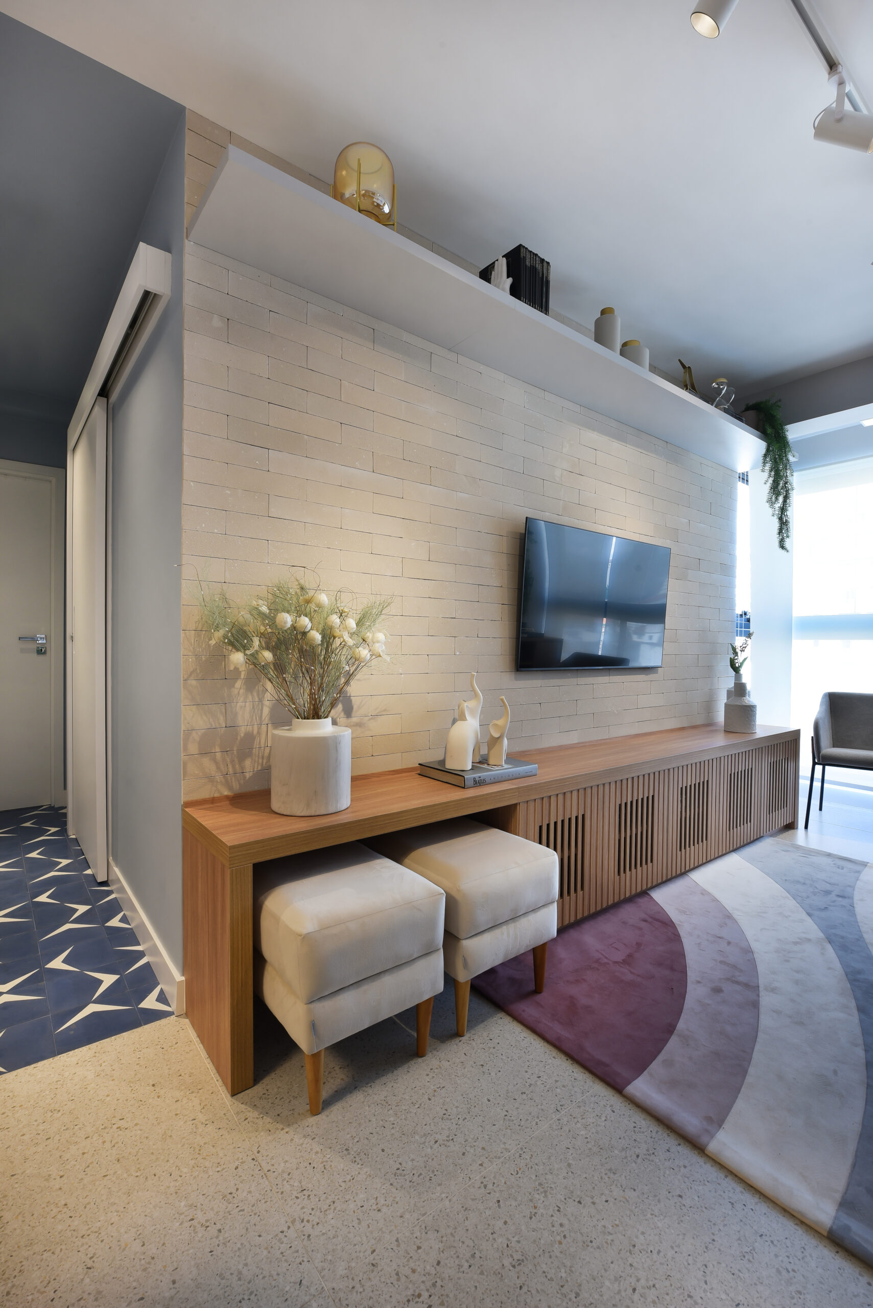 Sala de Estar: Tijolinho Brick Pérola 25x7cm – Revest Brick