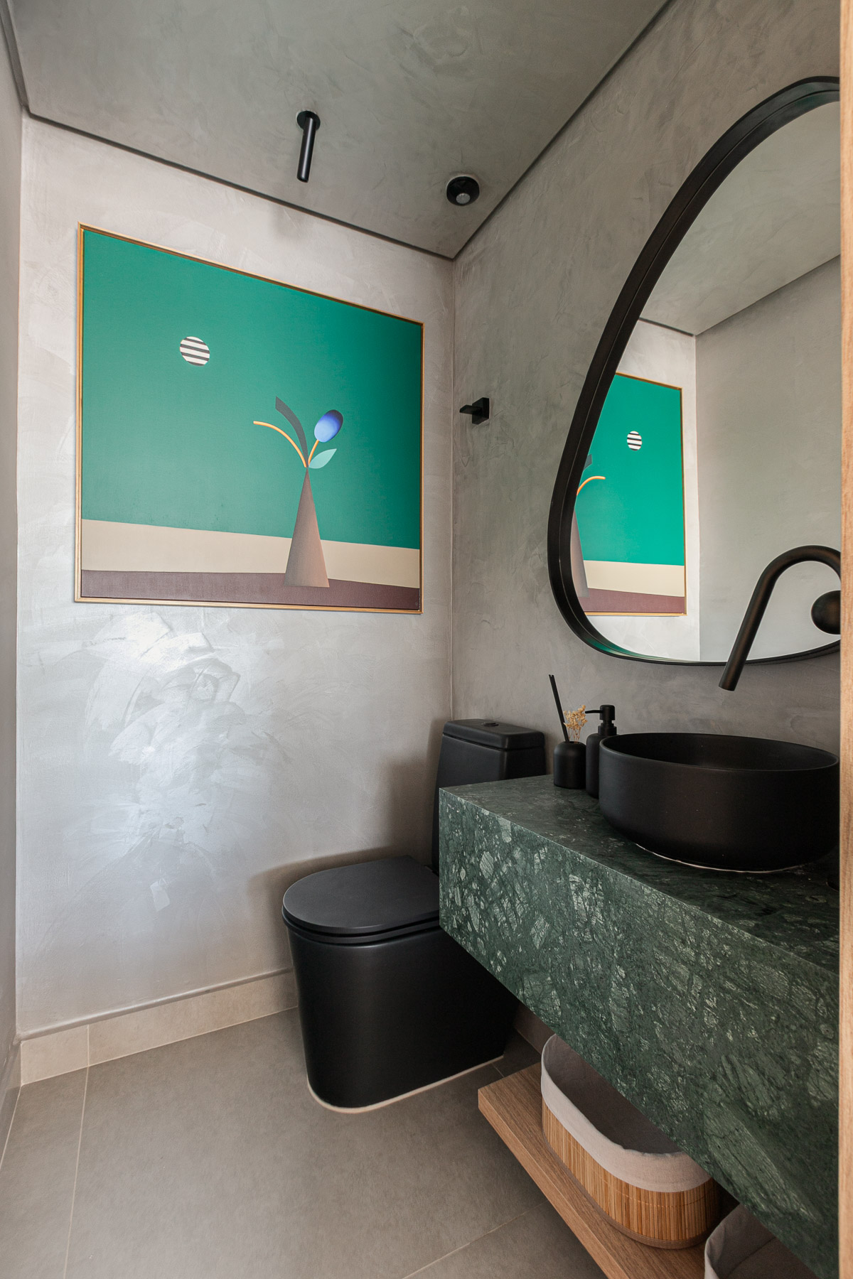 Paredes e Forro Lavabo: Pintura com Textura Velvet na cor Madeira Esfumaçada – Coral