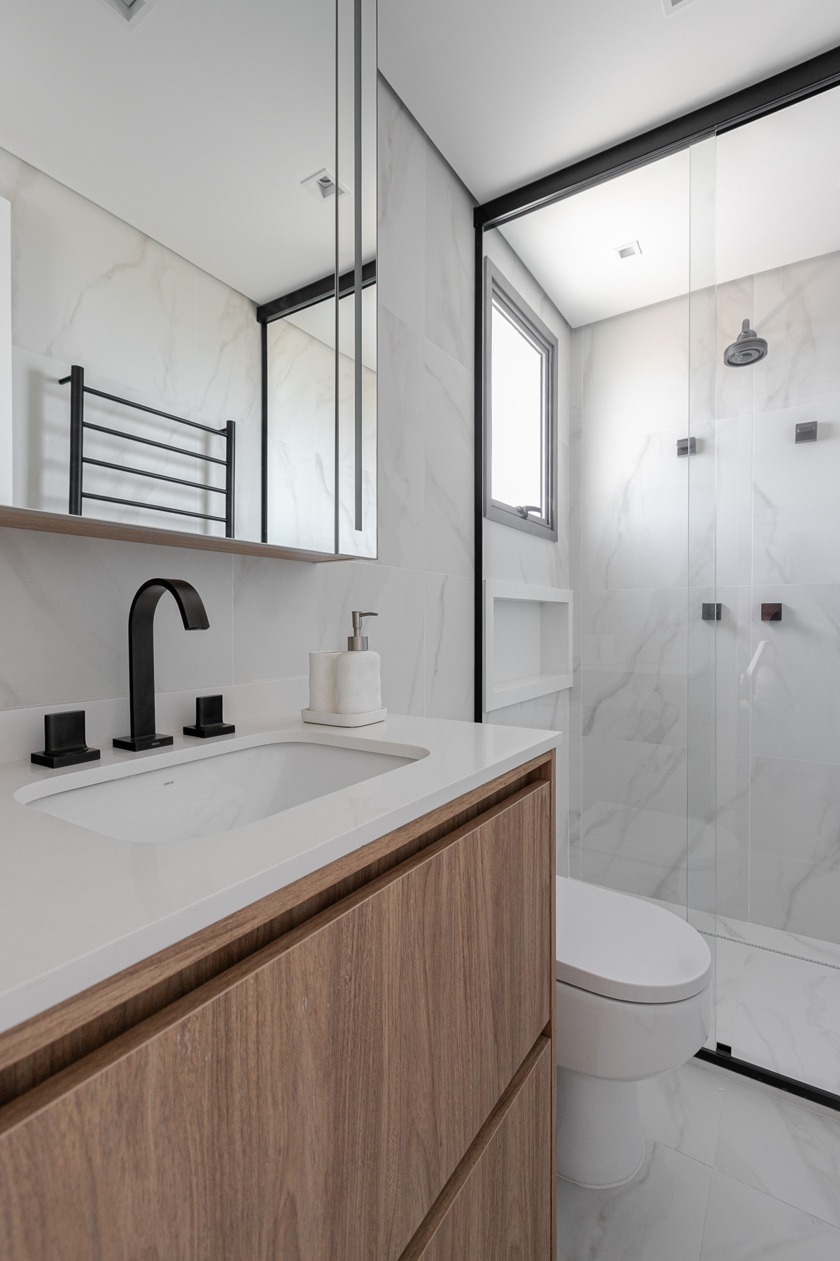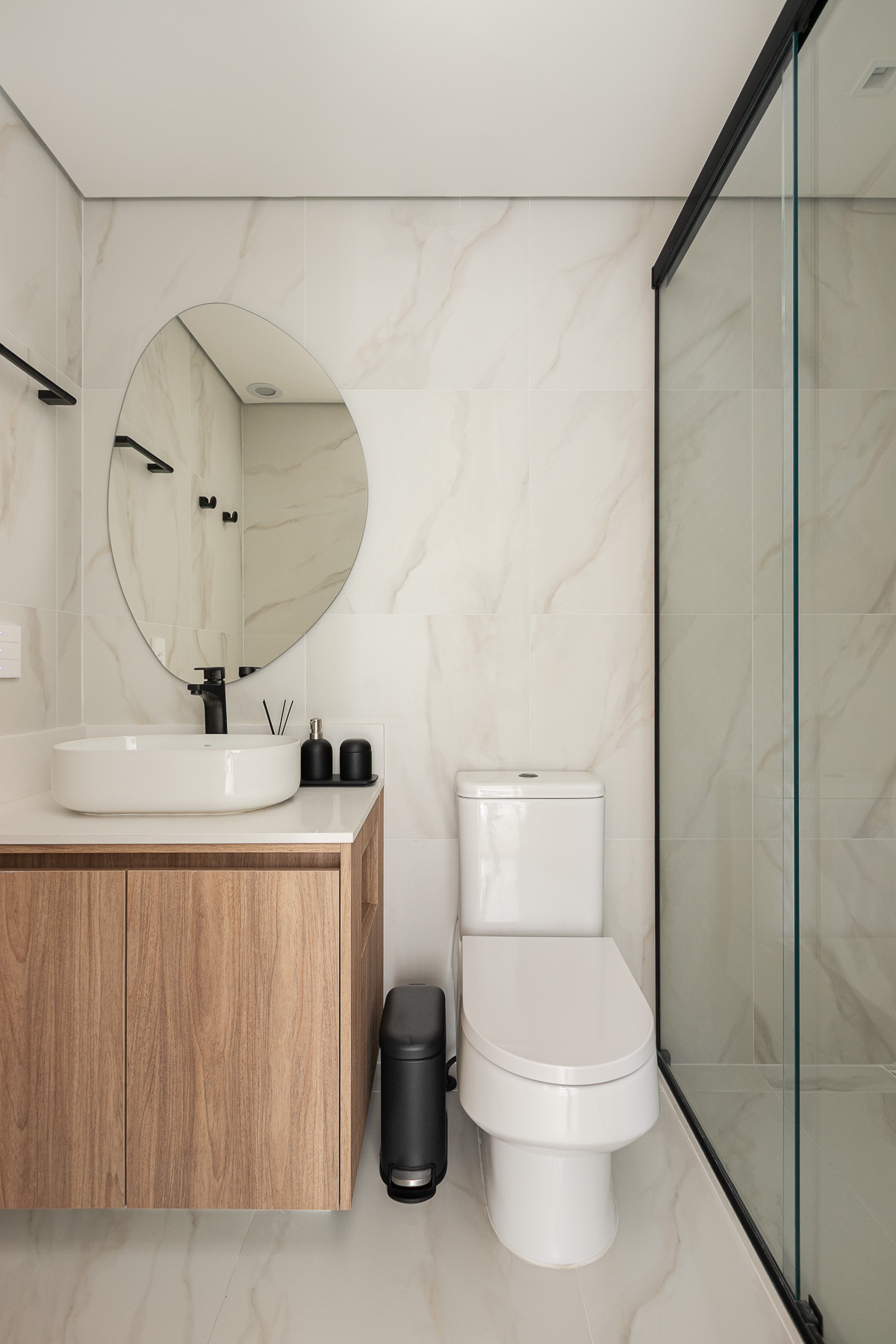 Parede Banhos e Área de Serviço: Porcelanato Bianco Covelano Natural- 60x60cm – Portobello (Material Entregue Pela Construtora)