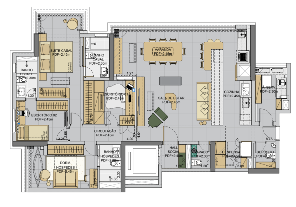 Escritório 02, Suíte Casal e Dormitório Hóspedes: MDF Nude – Berneck