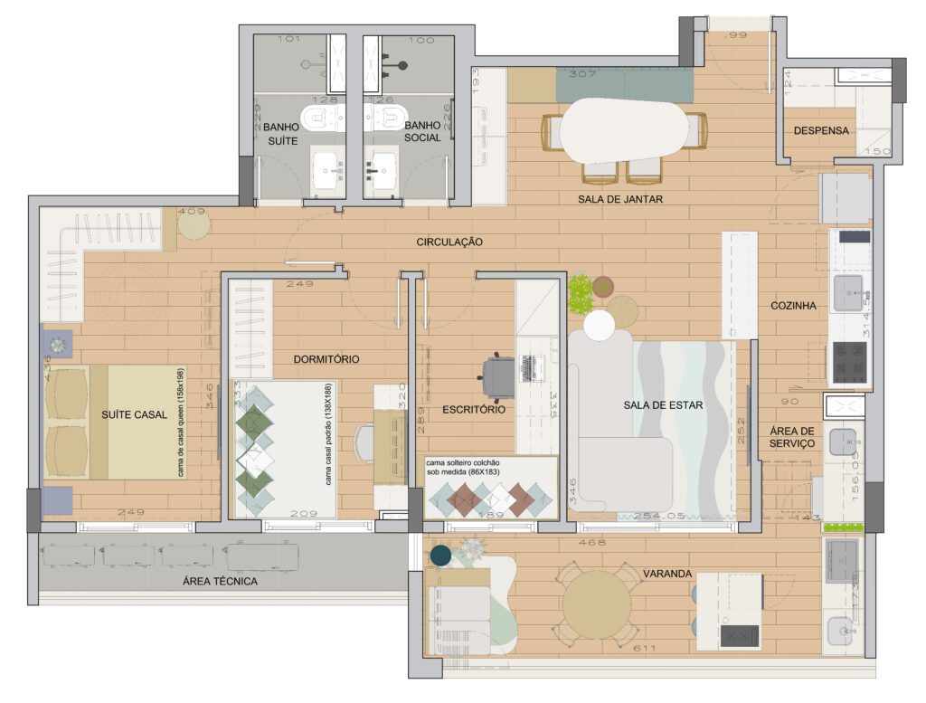 Piso geral: Porcelanato Araucária Clara Retificado Natural 20x120cm – Portobello (Existente)