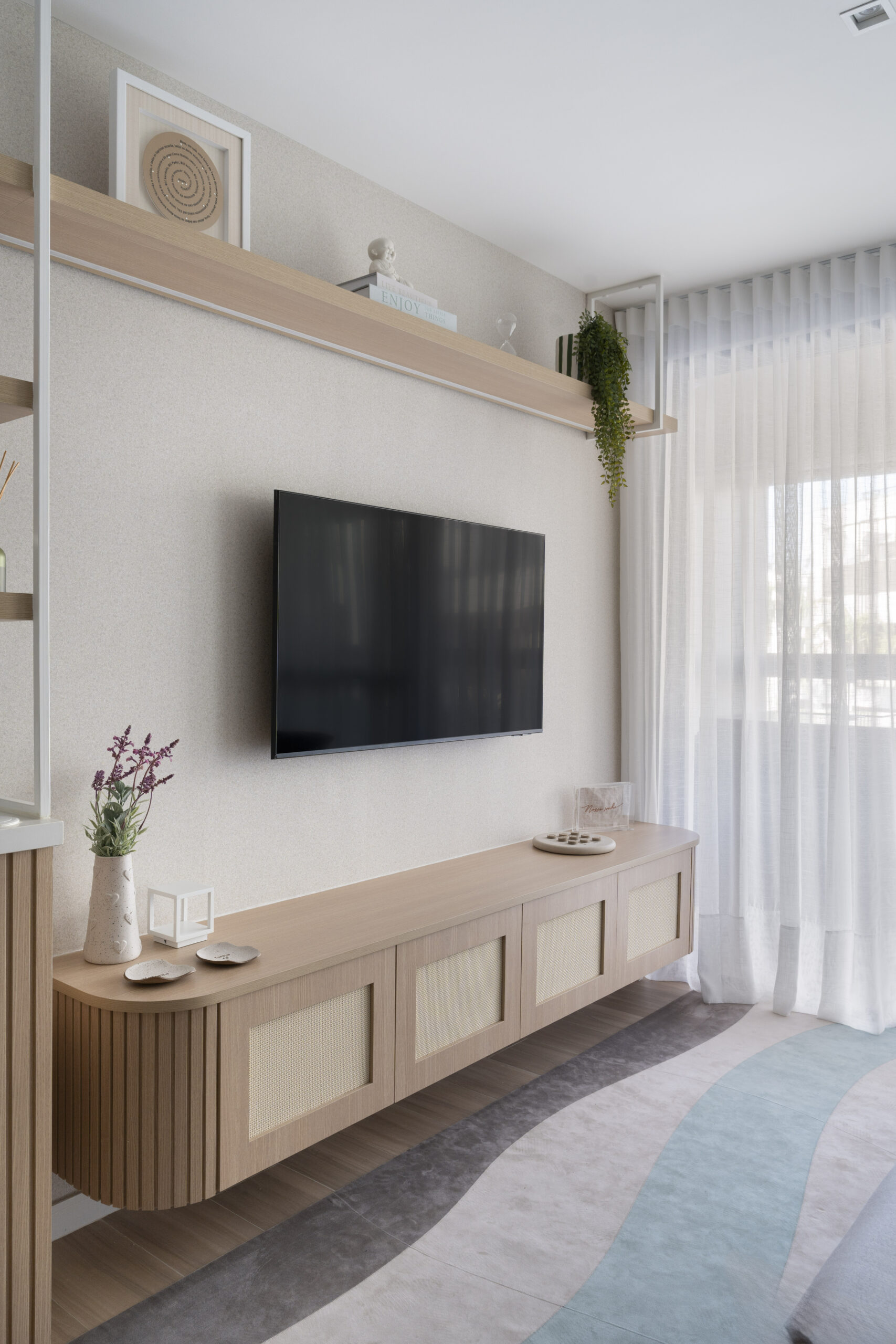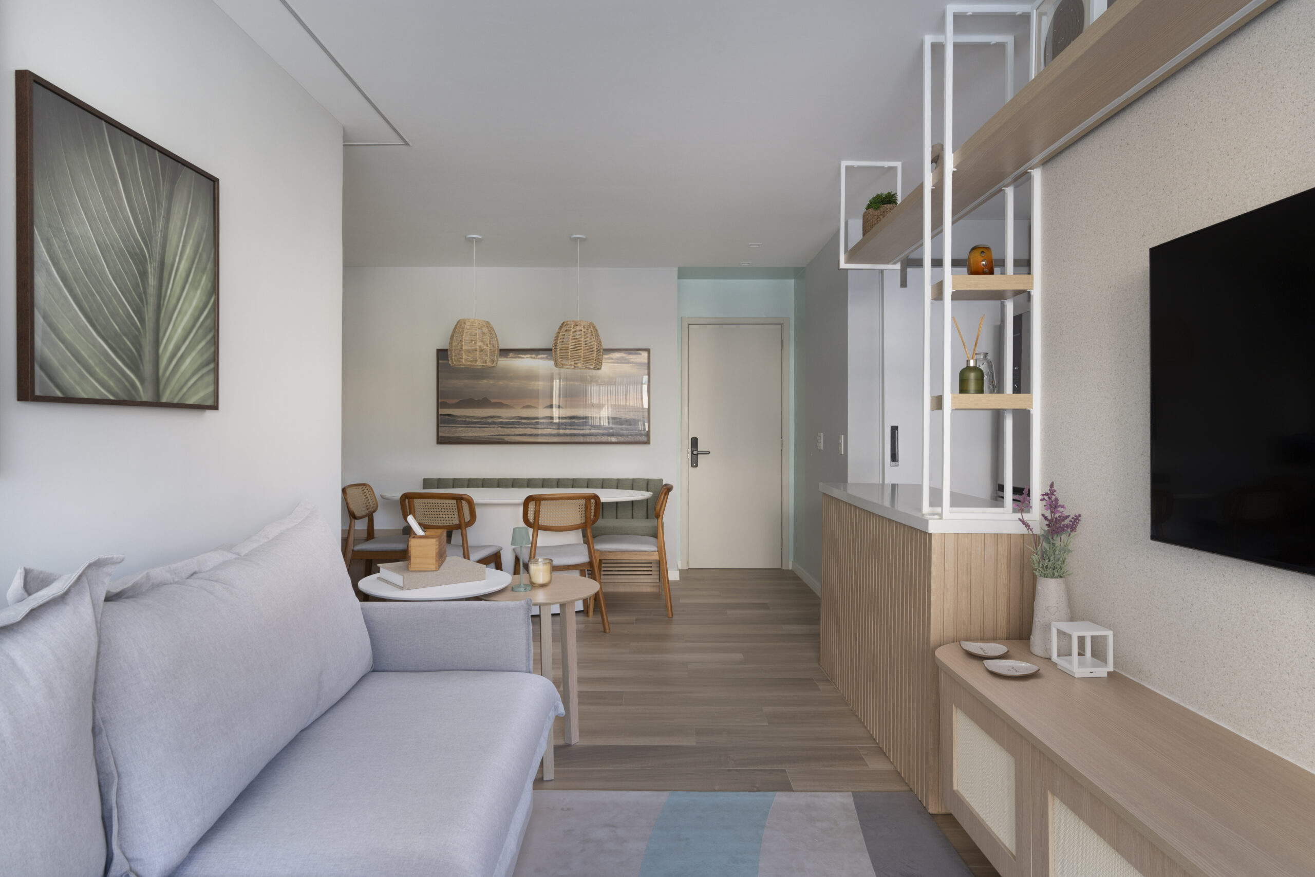 Sala de Estar e Suíte: Papel de Parede Textura Mica Natural
