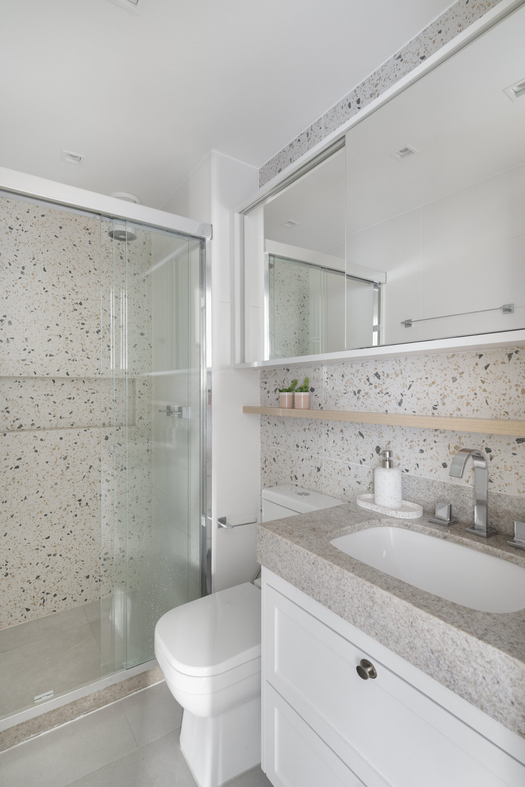 Parede Banho Suíte: Porcelanato Confete White Natural 100x100cm – Ceusa