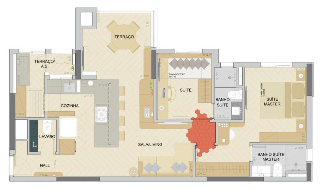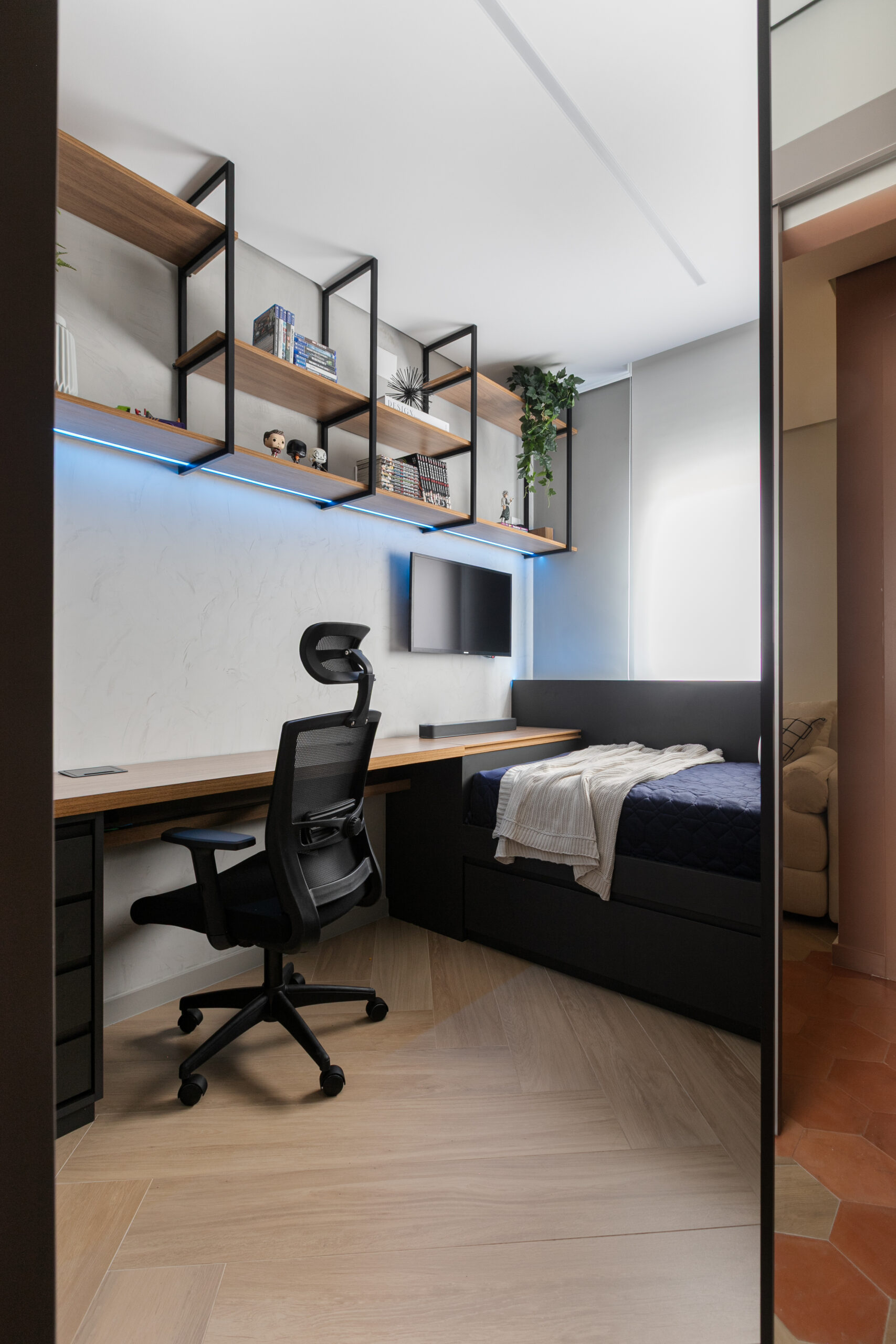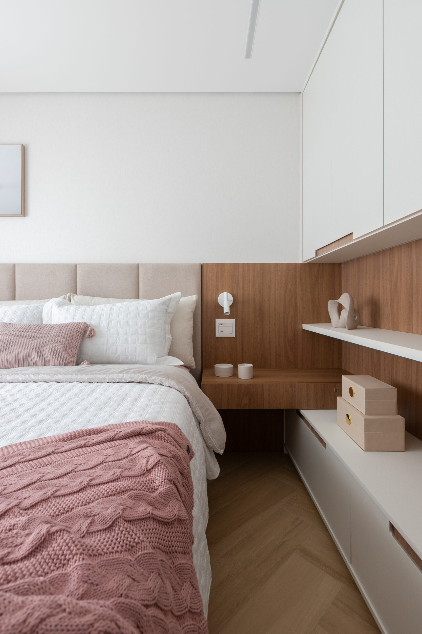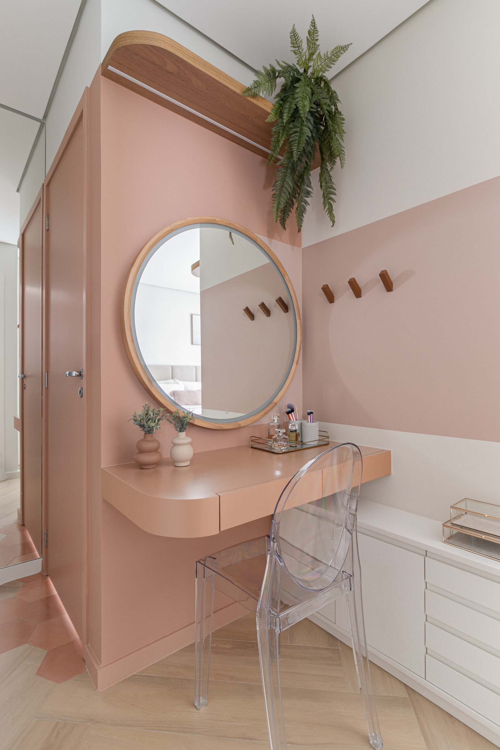 O 212 é um puro charme! Um apartamento colorido e aconchegante, com um mix de tons de verde e rosa que traz leveza e personalidade. A madeira, a iluminação cênica e os detalhes ripados deixam tudo ainda mais acolhedor. Cada cantinho foi pensado pra ser funcional e cheio de alma, desde o hall verde até a cozinha que se abre pra varanda gourmet.