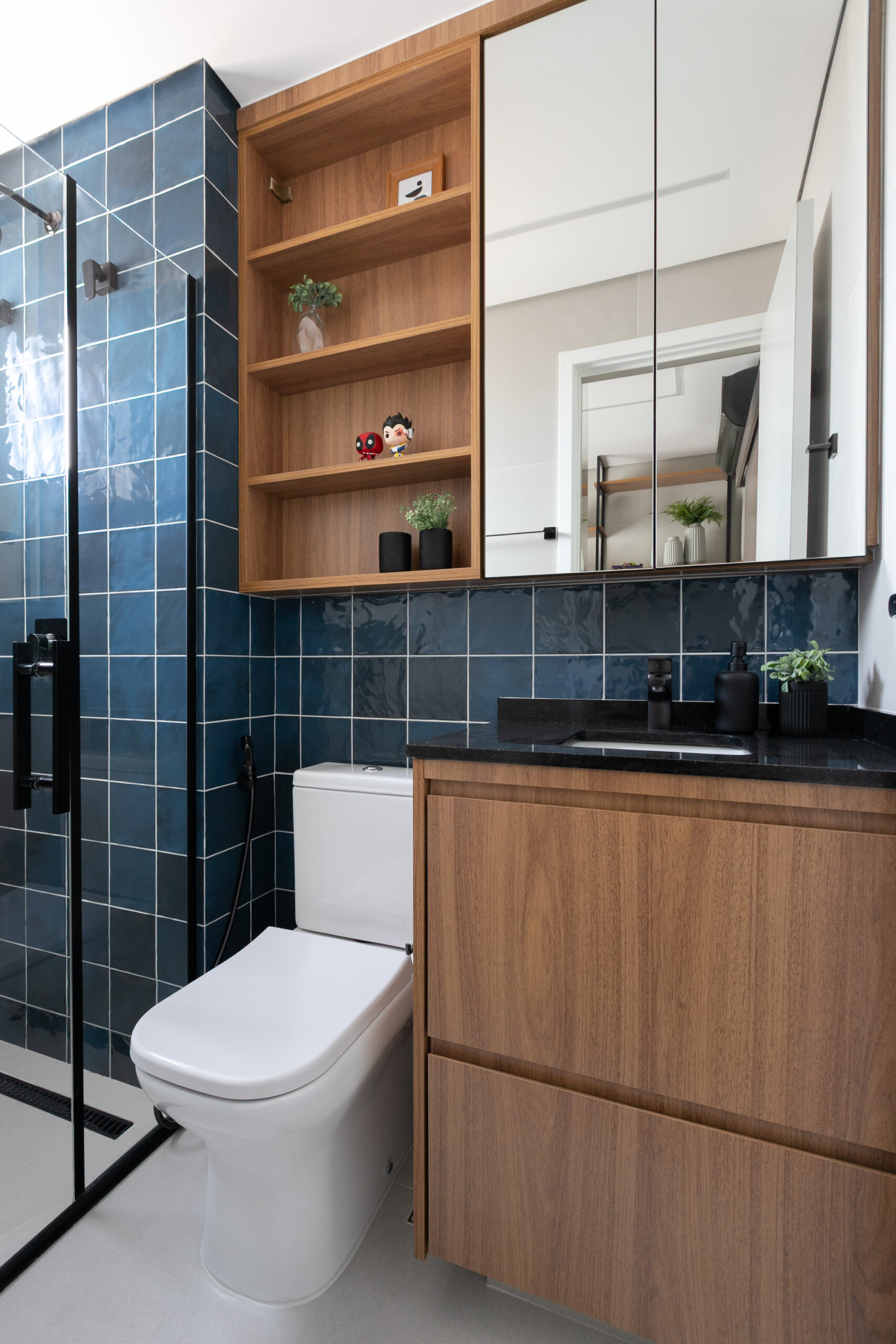 Parede Banho Suíte: Revestimento Gouache Bleu Marine – 15,5×15,5cm – Portobello