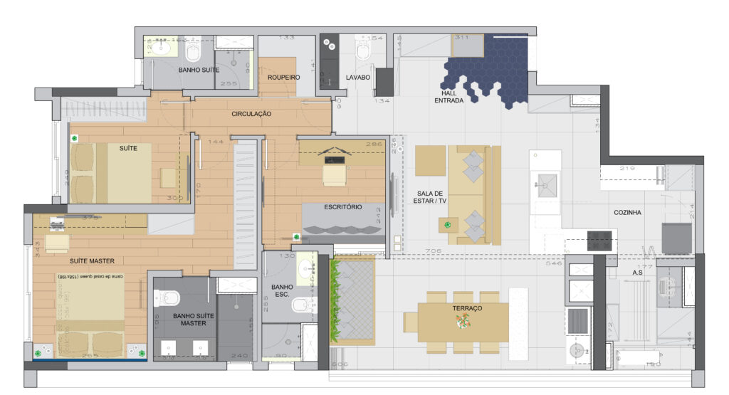Piso geral (Área Íntima): Porcelanato Araucária Escura – 20×120 Cm – Portobello