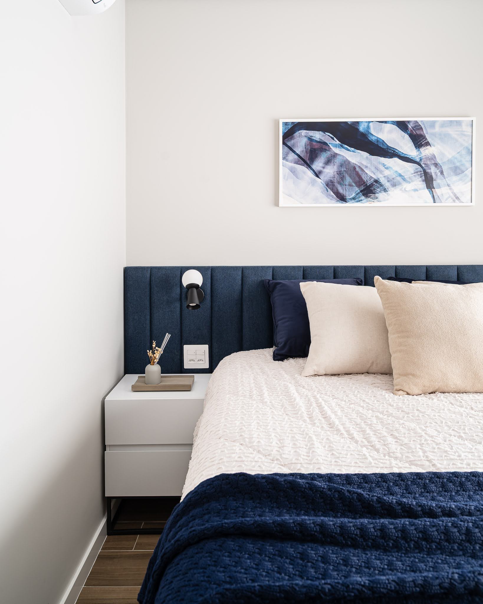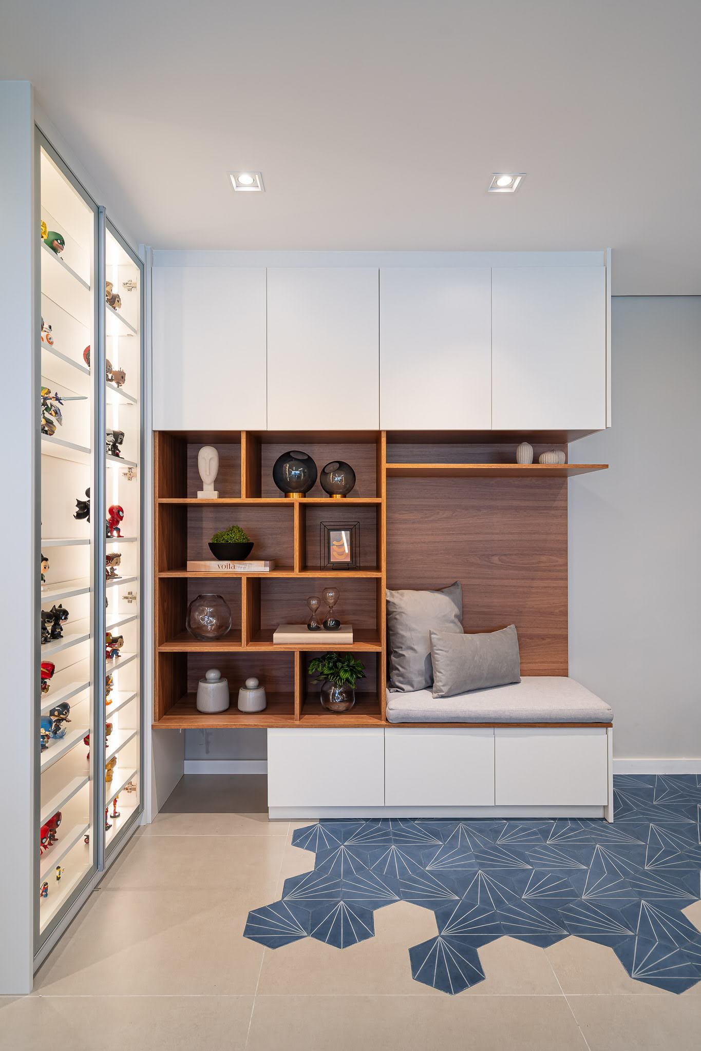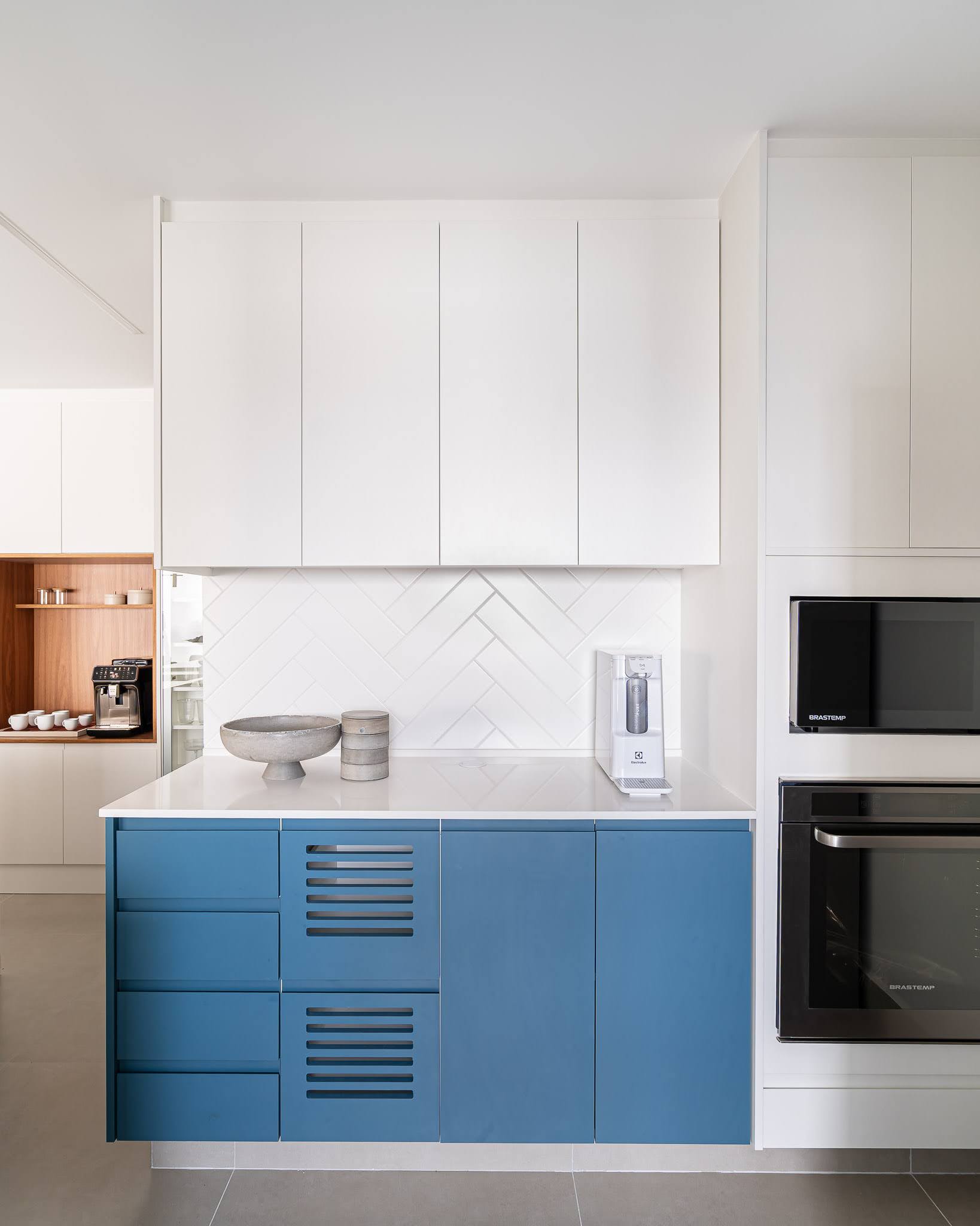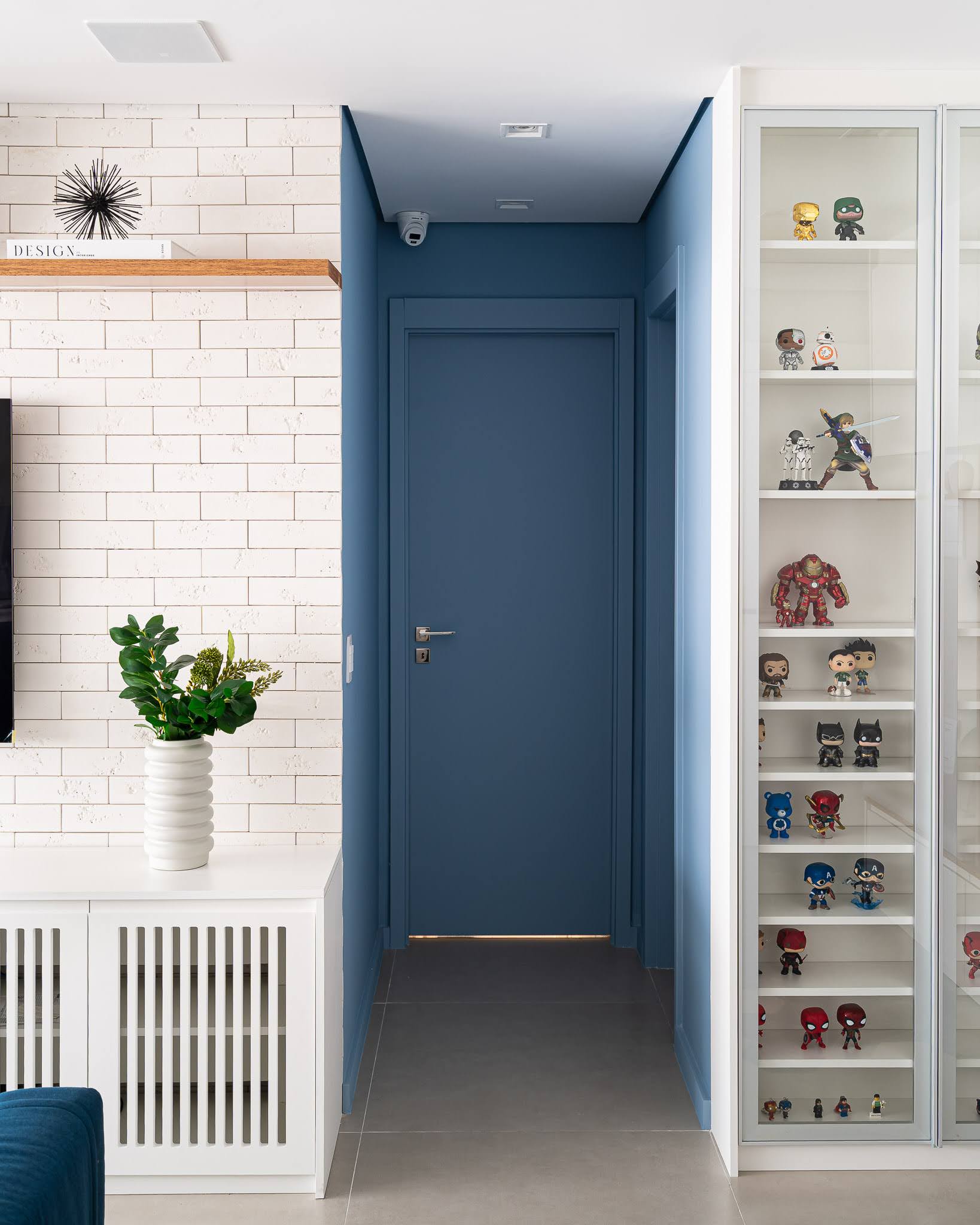 Porta circulação íntima: Pintura do lado externo (Sala) na cor Azul Etéreo – Suvinil e do lado interno (Lavabo) na cor Nimbus – Suvinil
