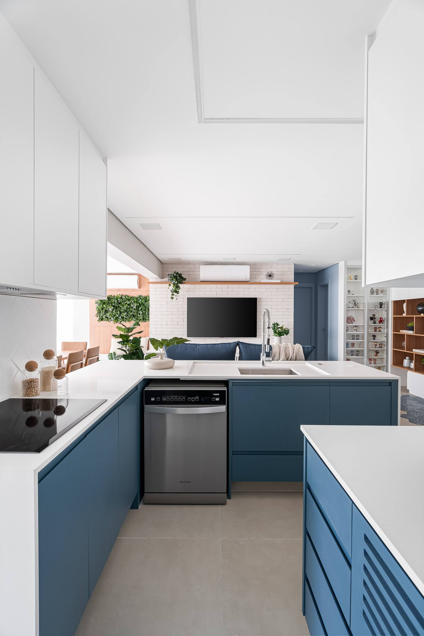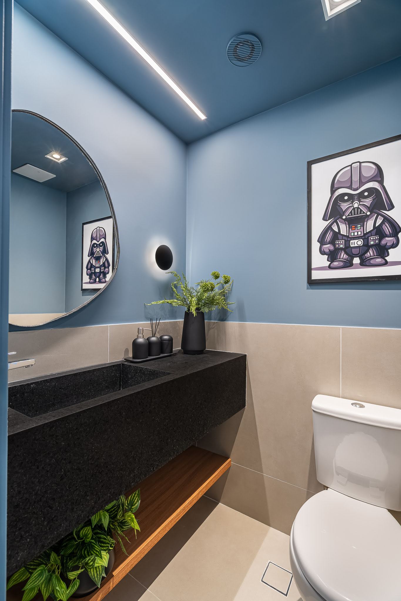 Porta Lavabo: Pintura do lado externo (Sala) na cor Azul Etéreo – Suvinil e no lado interno (Lavabo) na cor Nimbus – Suvinil