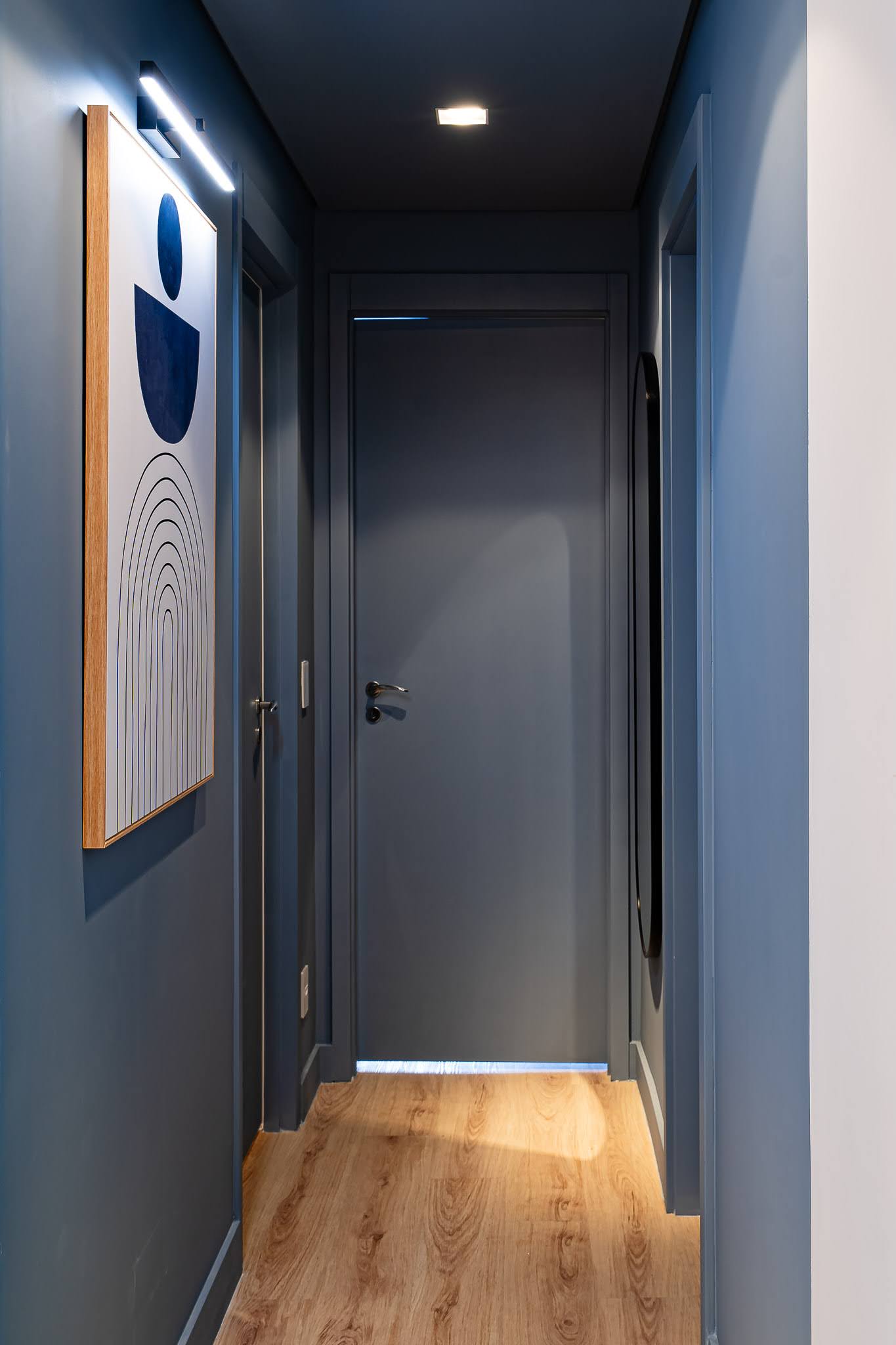 Corredor (paredes, portas, forro e rodapés): Pintura na cor Golfinho – Suvinil