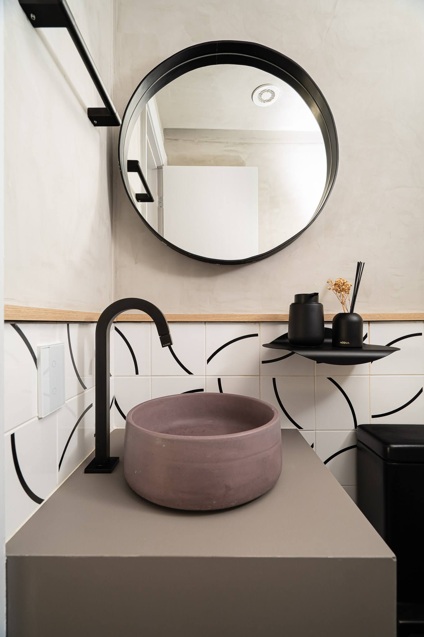 Banho Suíte Hóspedes: Beats Bone ASH NAT. – 90x90cm – Portobello e Soma Concreto Puro NAT. – 90x90cm – Portobello