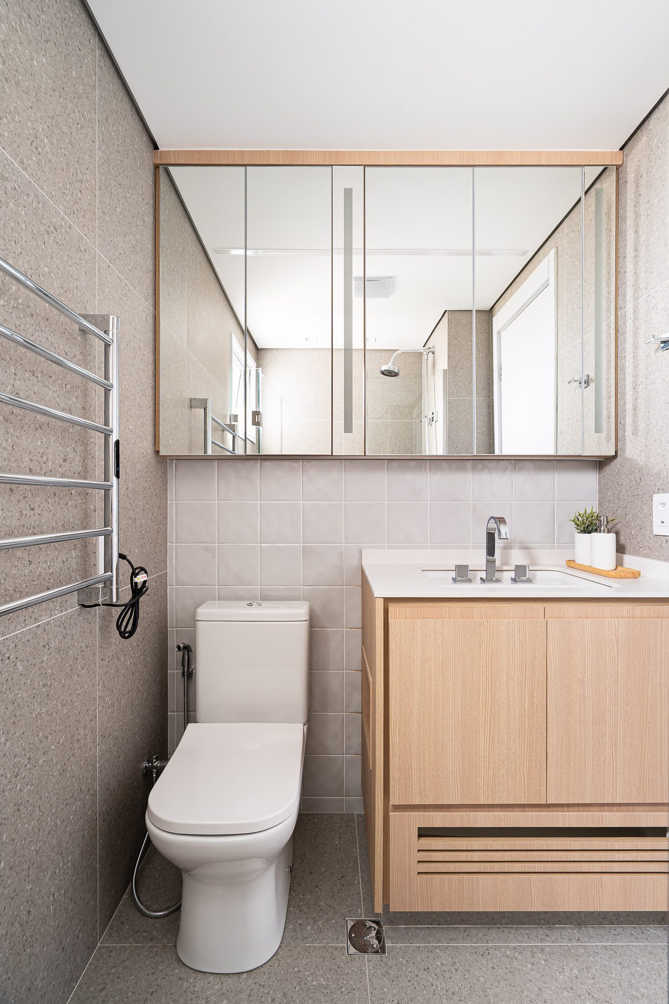 Banho Suíte Casal: Mood WH LUX – 15x15cm – Portinari e Beats Bone ASH NAT. – 90x90cm – Portobello