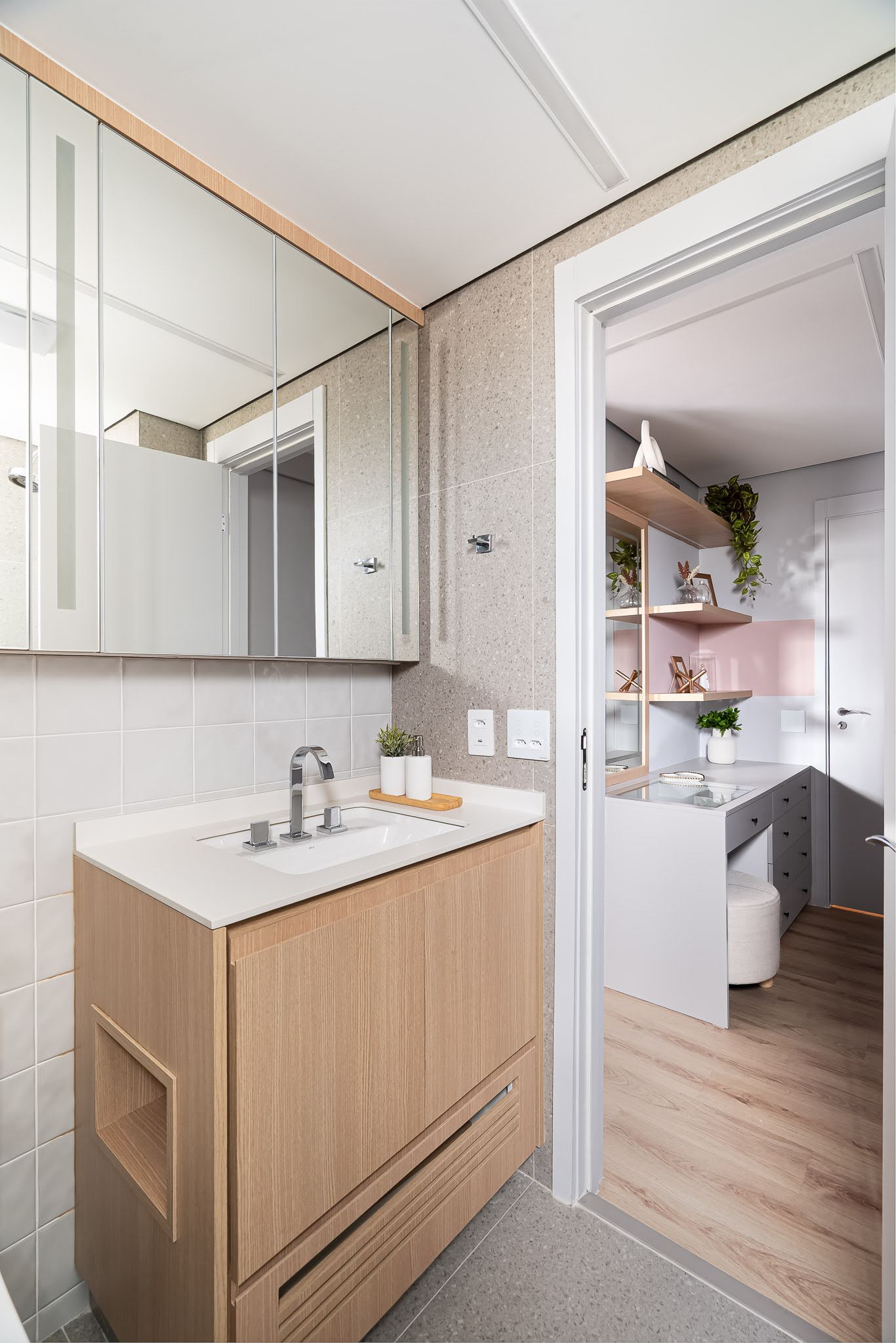 Banho Suíte Filha: Mood SKP LUX – 15x15cm – Portinari e Beats Bone NAT. – 90x90cm – Portobello
